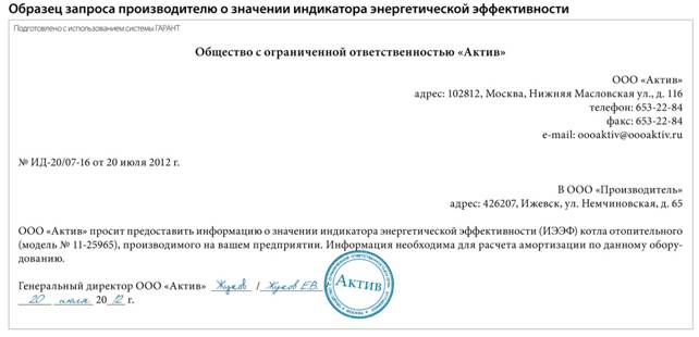 Перечень объектов, имеющих высокую энергоэффективность, для которых не предусмотрено установление классов энергетической эффективности, вступил в силу 1 мая 2012 года (утв. пост. Правительства РФ от 16.04.2012 № 308 (далее — Перечень)). Документ наконец-то позволит фирмам — владельцам таких объектов применить налоговые льготы, введенные еще в 2010 и 2011 годах. Напомним, тогда в Налоговый кодекс были внесены поправки по налогу на прибыль и налогу на имущество (Федеральный закон от 23.11.2009 № 261-ФЗ, Федеральный закон от 07.06.2011 № 132-ФЗ). По энергоэффективным ОС можно ускоренно начислять амортизацию с применением специального коэффициента не выше 2 (подп. 4 п. 1 ст. 259.3 НК РФ). А также не нужно платить налог на имущество в течение трех лет с момента постановки объекта на учет (начиная с 01.01.2012) (п. 21 ст. 381 НК РФ). Чтобы компания могла применить льготу, индикатор энергетической эффективности (ИЭЭФ) основного средства должен соответствовать указанному в Перечне. Однако иногда в технической документации значение ИЭЭФ не указано. В таком случае его нужно запросить у производителя в письменном виде (пример запроса см. ниже).