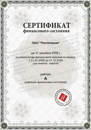 • по результатам анализа можно получить эксклюзивный, защищенный от подделки сертификат, подтверждающий присвоенный организации рейтинг финансового состояния;