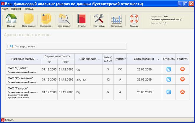 • анализ как одиночной бухгалтерской отчетности, так и отчетности за несколько периодов (месяцев, кварталов, лет) с желаемым шагом;