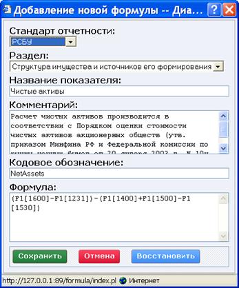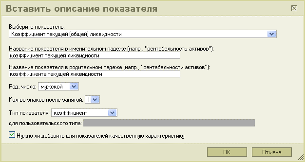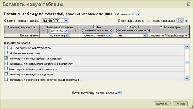 • можно легко изменить формулы расчета показателей, их качественные оценки без нарушения автономности и качества составления отчета, что делает продукт незаменимым не только для пользователей, не владеющих финансовым анализом, но и для специалистов в этой области;