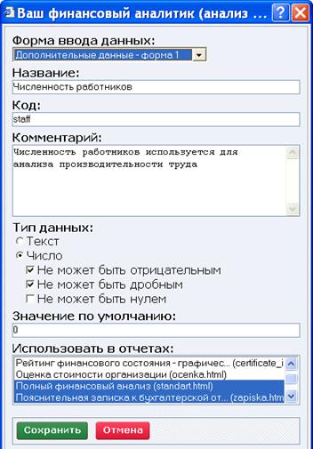 • простота и удобство ввода исходных данных -  данные вводятся в той форме, в которой они содержатся в бухгалтерской отчетности, не требуя никаких предварительных пересчетов;