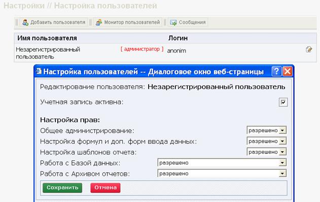 Второй этап: необходимо настроить права пользователя, используемого для внешней авторизации. Именно от этого пользователя будут наследоваться права для посетителя, пришедшего через форму внешней авторизации.