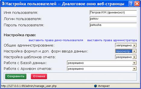 • хранение исходных данных и готовых отчетов с возможностью их быстрого выбора, сортировки;