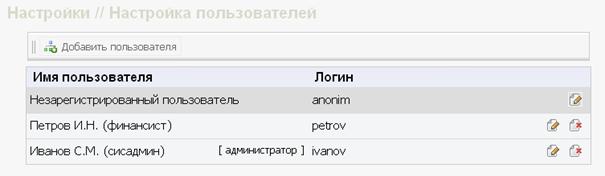 • настройка формы внешней авторизации для входа пользователей под внешним логином;